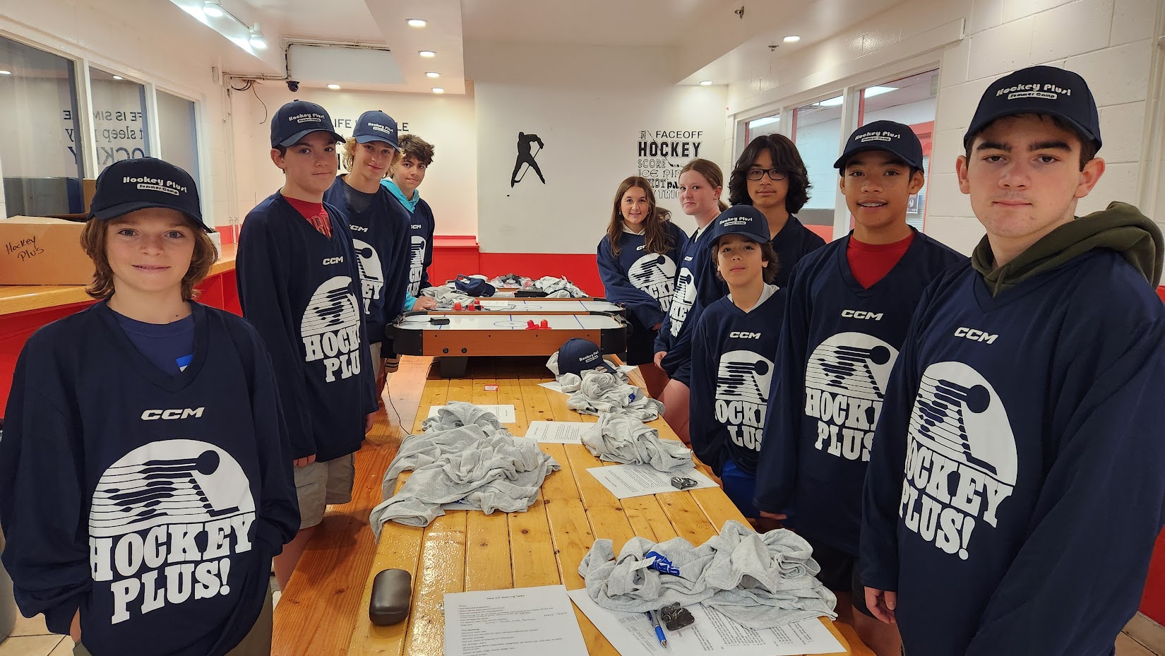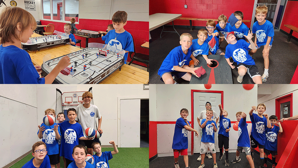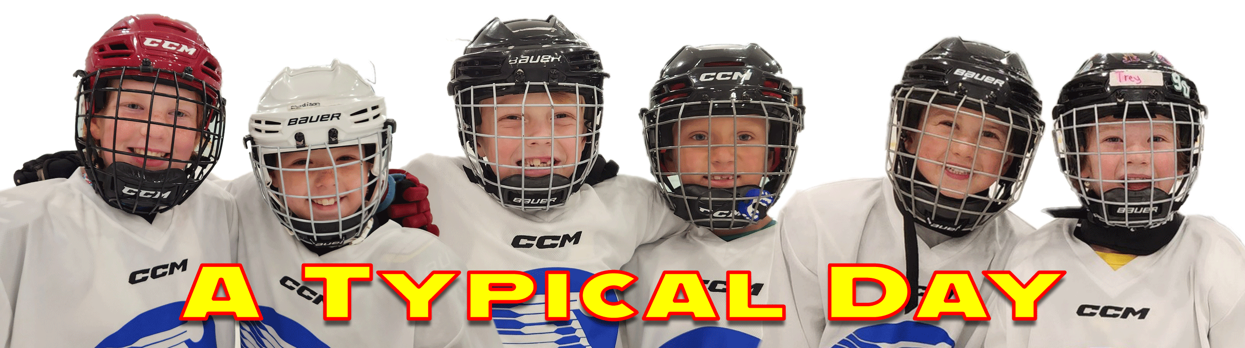 The younger group comes dressed for hockey. You can have a coach or a CIT (Counselor in Training) tie skates and help with helmet straps.